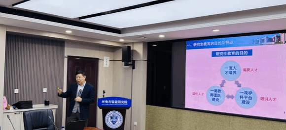 10月16日上午,光电与智能研究院、软件学院在友谊校区毅字楼606会议室联合举办了“教师能力提升计划”讲座,邀请物理与科学技术学院赵建林教授作题为《学科、团队建设与优秀研究生培养——如何做一名优秀的研究生导师》的报告。王琦院长及两院部分导师、教职工参加,邓冬虎副院长主持。
