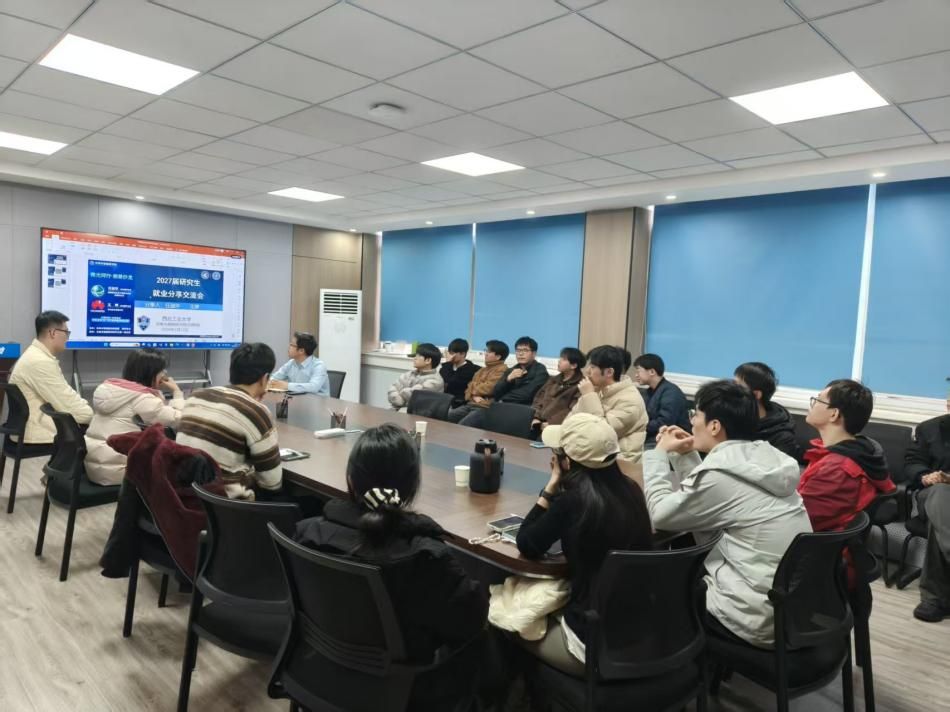 3月19日下午,我院微光同行·朋辈沙龙系列之企业就业经验分享活动在在毅字楼308会议室举行。2026届硕士生、即将入职国网陕西省电力有限公司信息通讯公司的任溢华同学和即将入职华为技术有限公司的王婷同学受邀分享求职经验。活动由2024级硕士班辅导员王江老师主持。