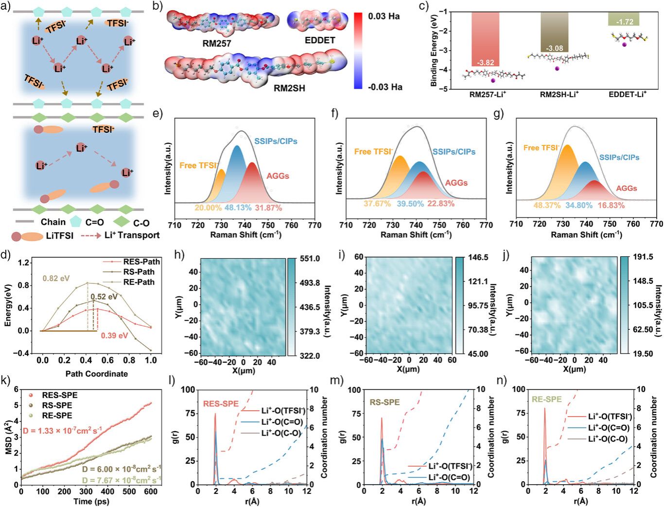 图2 通过理论与实验揭示了羰基氧与醚键氧在Li+溶解、迁移中的差异作用及协同运输