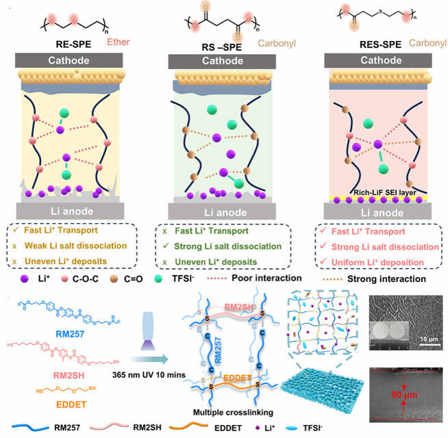 该研究不仅报道了一种高性能固态电解质材料,更从原理上提出了一种全新的离子传输设计范式——通过空间有序的分子功能分区,实现离子输运过程不同环节的解耦与协同。研究所采用的紫外光聚合制备方法快速、温和,与卷对卷生产工艺兼容性好,为新一代固态电池电解质的设计与规模化制备提供了极具价值的平台和思路。
